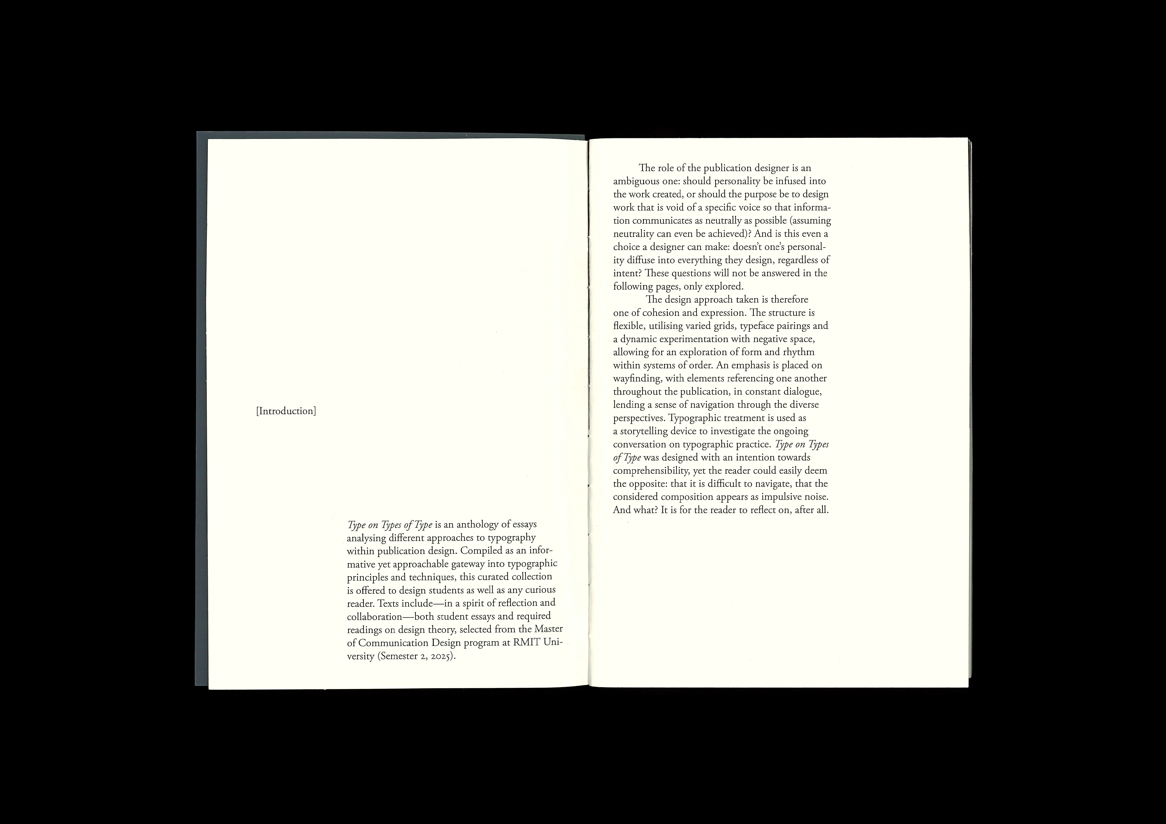 An anthology of essays on different approaches to typography within publication design.